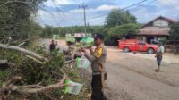 Polsek Teluk Bayur Evakuasi Pohon Tumbang di Jalan Poros Samarinda Labanan Makmur