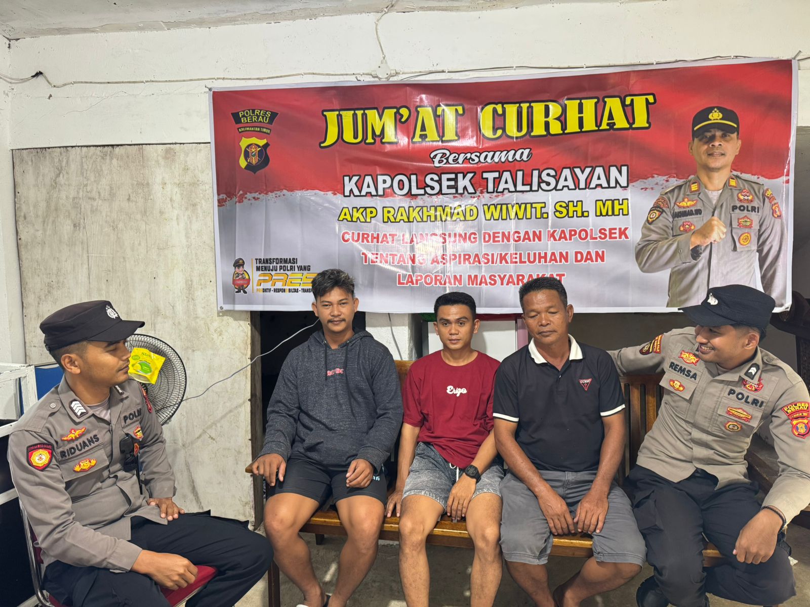 Pospol Biatan Polsek Talisayan kembali melaksanakan kegiatan Jumat Curhat sebagai wadah komunikasi dua arah antara polisi dan masyarakat. Kegiatan tersebut digelar pada Jumat, 14 November 2025, mulai pukul 09.00 WITA hingga selesai, bertempat di Lapangan Sepak Bola Kampung Biatan Ilir, Kecamatan Biatan, Kabupaten Berau.