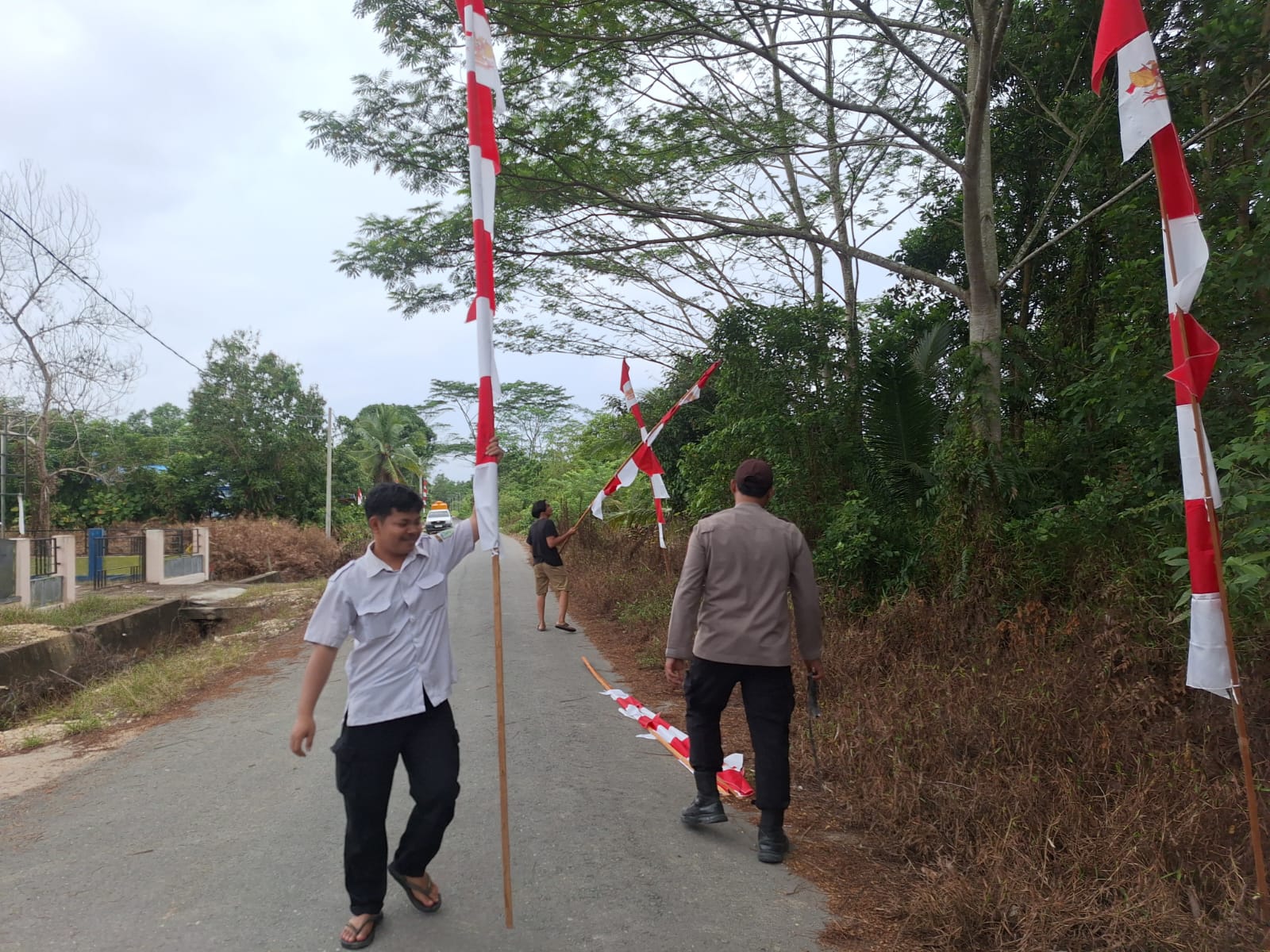 Brigpol J. Alam Putra mengunjungi langsung rumah-rumah warga untuk mengajak mereka berpartisipasi dalam semarak kemerdekaan dengan memasang bendera merah putih dan umbul-umbul di lingkungan masing-masing.