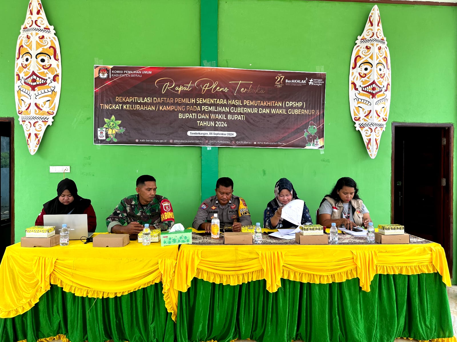 Polres Berau – Pada hari Jumat, 6 September 2024, pukul 14.00 WITA, Bhabinkamtibmas Kampung Sambakungan, Aiptu Suharno, menghadiri kegiatan Rapat Pleno Terbuka Rekapitulasi Daftar Pemilih Sementara Hasil Perbaikan (DPSHP) tingkat kampung di Kantor Kepala Kampung Sambakungan, Kecamatan Gunung Tabur, Kabupaten Berau. Rapat tersebut digelar dalam rangka persiapan Pemilihan Gubernur dan Wakil Gubernur, serta Bupati dan Wakil Bupati pada tahun 2024.