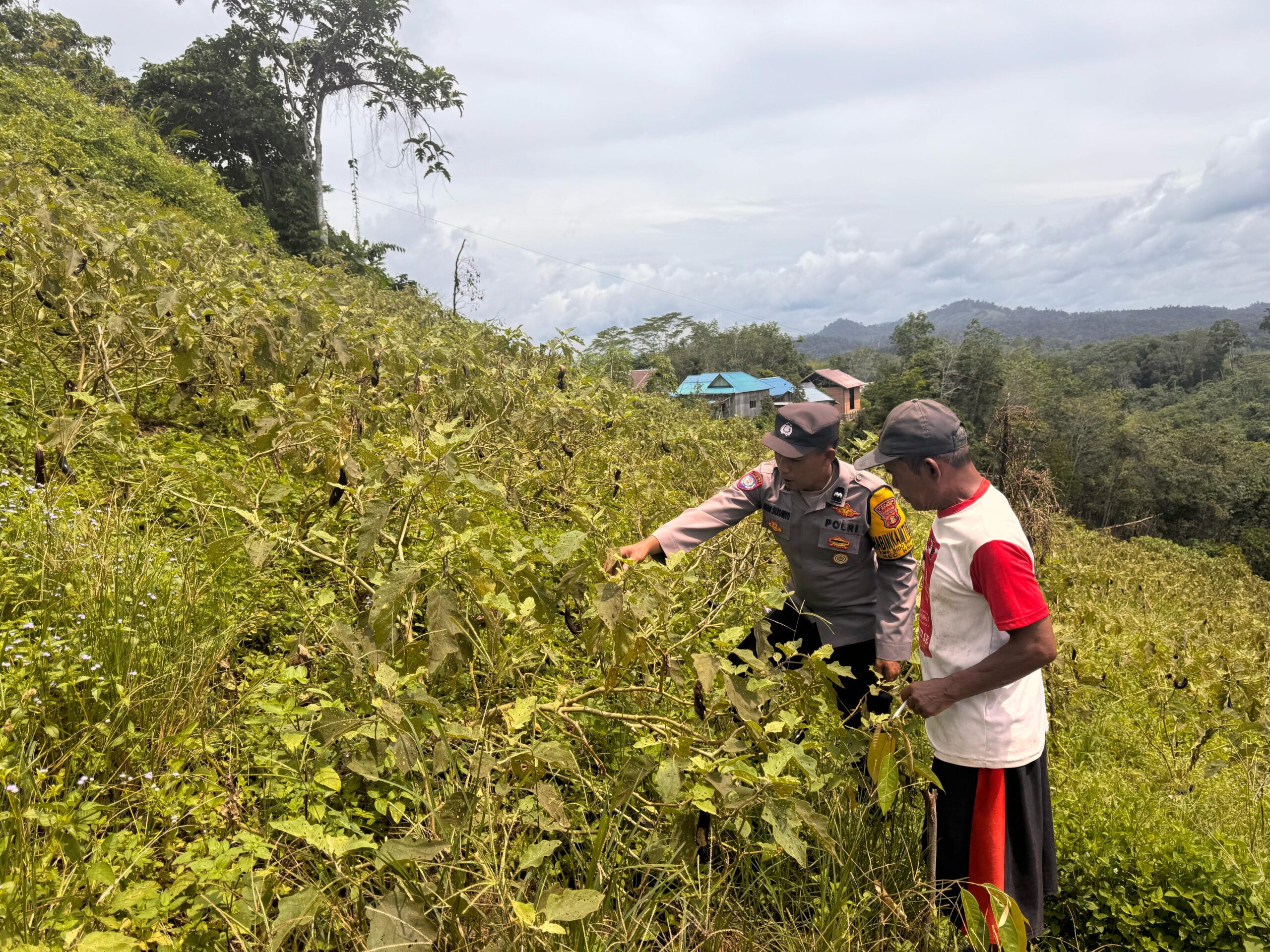 Bhabinkamtibmas Kampung Sido Bangen, Aipda Heri Susanto, melaksanakan pengecekan lahan penanaman ketahanan pangan di RT 001 Kampung Sido Bangen, Kecamatan Kelay, Kabupaten Berau. Lahan tersebut memiliki luas 2.000 m² dan dikelola oleh warga setempat bernama Mukahar.
