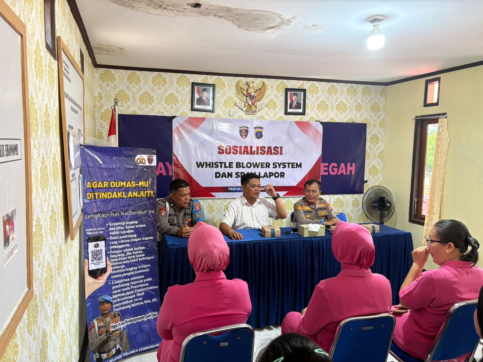 Selain itu, tim juga menyosialisasikan Whistle Blower System (WBS) sebagai sarana pelaporan internal bagi anggota Polri maupun masyarakat untuk melaporkan pelanggaran disiplin atau etik dengan jaminan kerahasiaan identitas pelapor. Di sisi lain, melalui SP4N-Lapor!, personel diingatkan untuk merespons setiap pengaduan masyarakat secara cepat, profesional, dan transparan, sebagai wujud peningkatan pelayanan publik yang akuntabel.