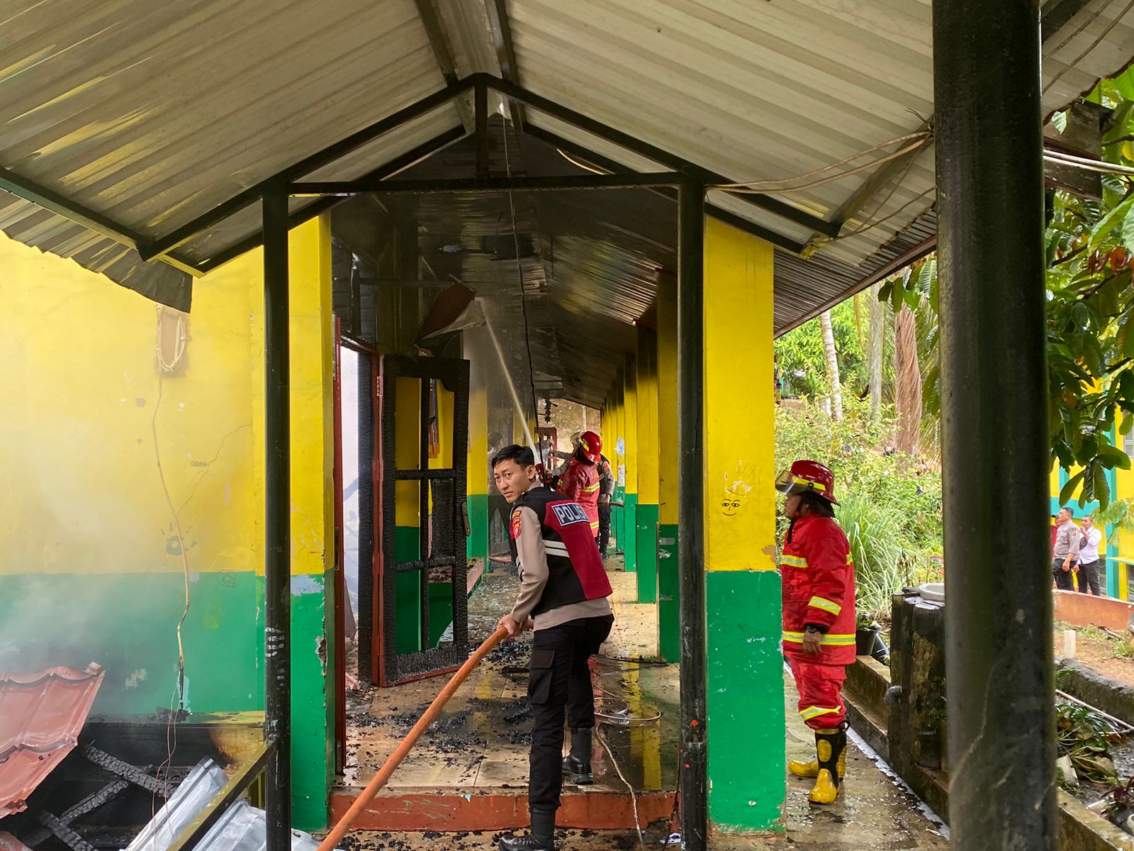 Menurut kronologi kejadian, saksi yang sedang bekerja di sekitar lokasi melihat kepulan asap dari ruang kelas 9A. Saksi segera bertindak mematikan aliran listrik untuk mencegah penyebaran api, lalu menghubungi guru Tata Usaha (TU) sekolah, yang kemudian melapor ke pihak pemadam kebakaran dan Ketua RT setempat.