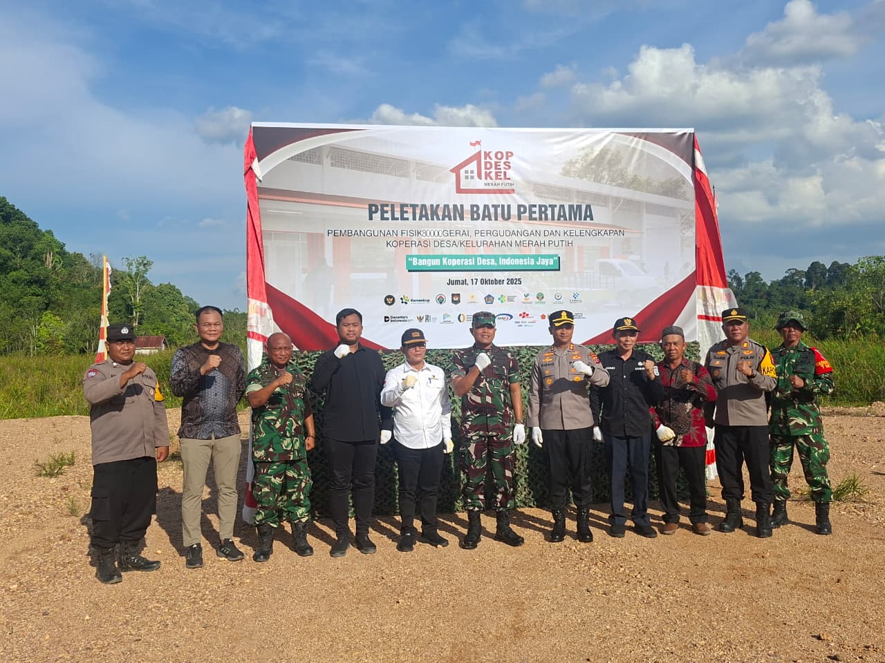 Kegiatan yang menjadi simbol dimulainya pembangunan gerai Koperasi Merah Putih ini dihadiri oleh unsur Forkopimda Kabupaten Berau, antara lain Kapolres Berau AKBP Ridho Tri Putranto, S.H., S.I.K., M.Si., Dandim 0902/Bru Letkol Inf Romi Sakti Alamsyah, S.I.P., serta perwakilan dari Bupati Berau, DPRD, Kejaksaan, Pengadilan Negeri, dan Pemerintah Kecamatan Sambaliung. Turut hadir pula Ketua Koperasi Merah Putih, Didik, bersama tokoh masyarakat, TNI-Polri, dan tamu undangan lainnya.