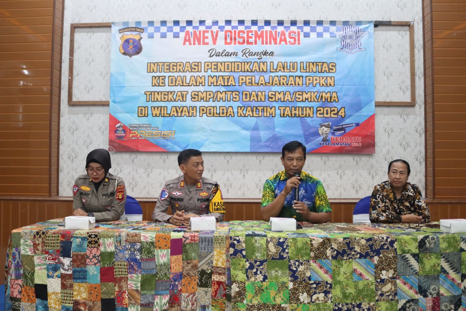 Tanjung Redeb, 7 November 2024 – Sebagai upaya untuk memperkuat kesadaran berlalu lintas di kalangan pelajar, Polda Kalimantan Timur melalui Direktorat Lalu Lintas (Dit Lantas) menggelar acara Anev Diseminasi dalam rangka integrasi pendidikan lalu lintas ke dalam mata pelajaran Pendidikan Pancasila dan Kewarganegaraan (PPKN) tingkat SMP/MTs dan SMA/SMK/MA. Acara yang diadakan pada hari Kamis, 7 November 2024, bertempat di SMA Negeri 1 Tanjung Redeb, Kabupaten Berau, dihadiri oleh berbagai pihak terkait, termasuk Kepala Satuan Lalu Lintas (Kasat Lantas) Polres Berau, AKP Wulyadi.