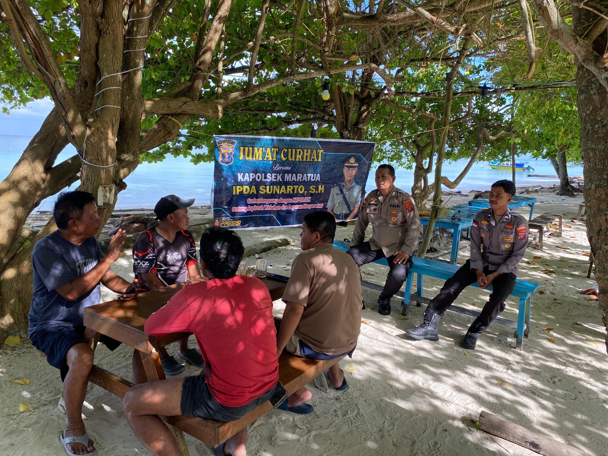 Kegiatan Jumat Curhat kembali digelar oleh jajaran Polsek Maratua pada Jumat (3/4/2026) pukul 10.30 WITA hingga selesai, bertempat di tepi pantai Kelurahan Teluk Harapan, Kecamatan Maratua. Kegiatan ini menjadi wadah bagi masyarakat untuk menyampaikan aspirasi serta keluhan secara langsung kepada pihak kepolisian.