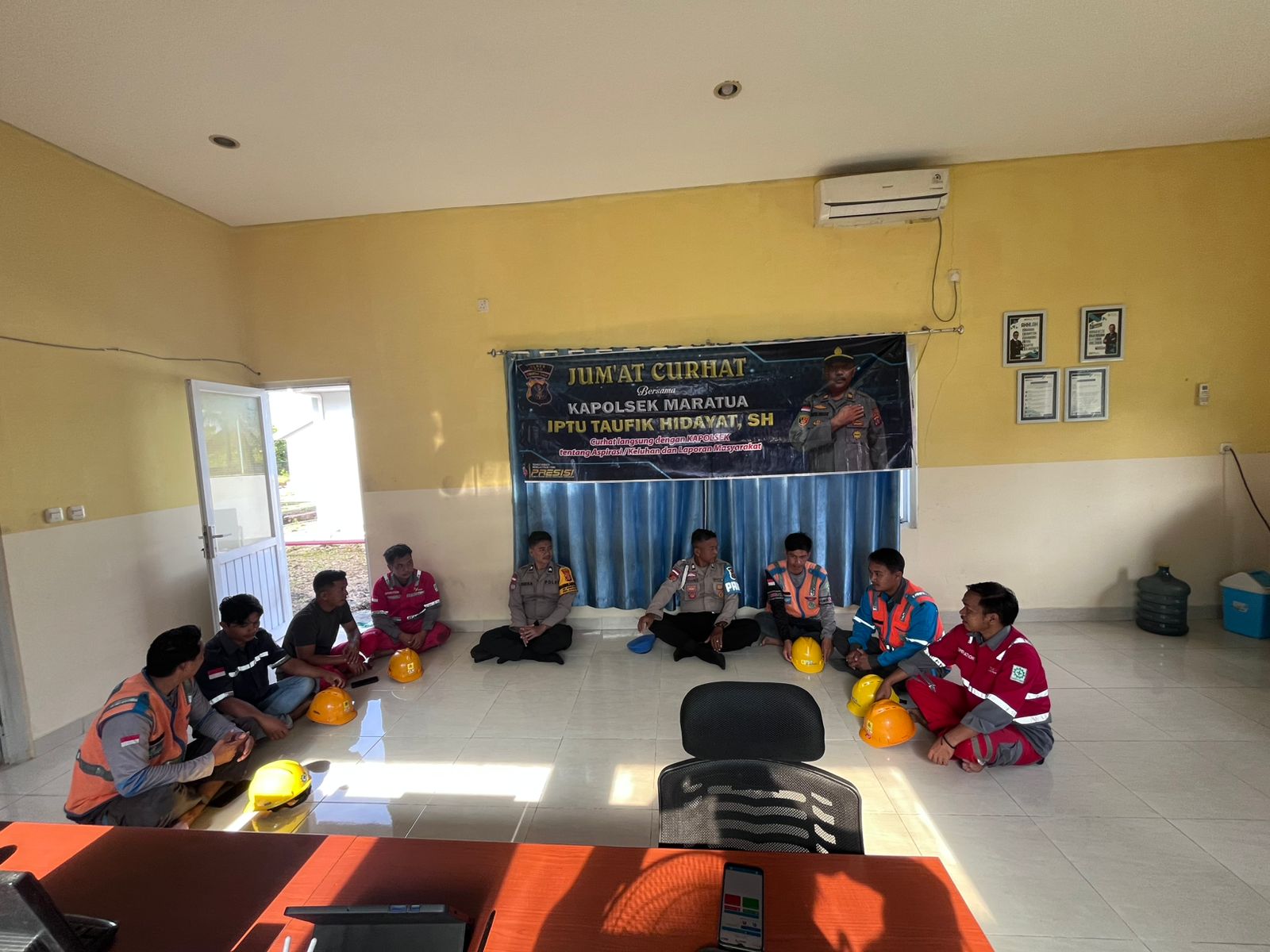 Polsek Maratua melaksanakan kegiatan Jumat Curhat bertempat di Kantor PLN Kecamatan Maratua. Kegiatan ini dihadiri oleh personel Polsek Maratua bersama karyawan PLN setempat.