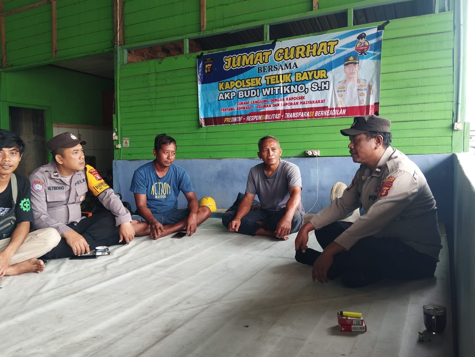 Polsek Teluk Bayur kembali menggelar kegiatan Jumat Curhat sebagai upaya mempererat komunikasi dengan masyarakat sekaligus membahas situasi keamanan dan ketertiban masyarakat (kamtibmas). Kegiatan tersebut dilaksanakan pada Jumat (3/4/2026) pukul 09.30 hingga 10.30 WITA, bertempat di Jl. Lubang Baru, RT 024, Kelurahan Teluk Bayur, Kecamatan Teluk Bayur, Kabupaten Berau.