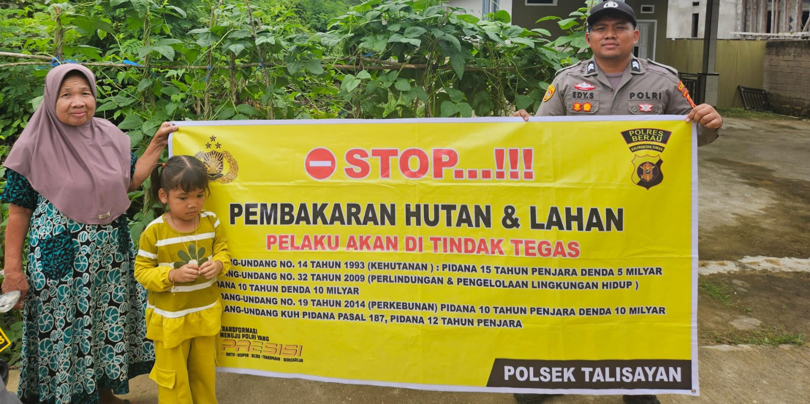Talisayan – Dalam rangka mencegah terjadinya kebakaran hutan dan lahan (karhutla), Polsek Talisayan terus mengoptimalkan upaya pencegahan melalui kegiatan sosialisasi dan imbauan langsung kepada masyarakat di wilayah hukumnya.