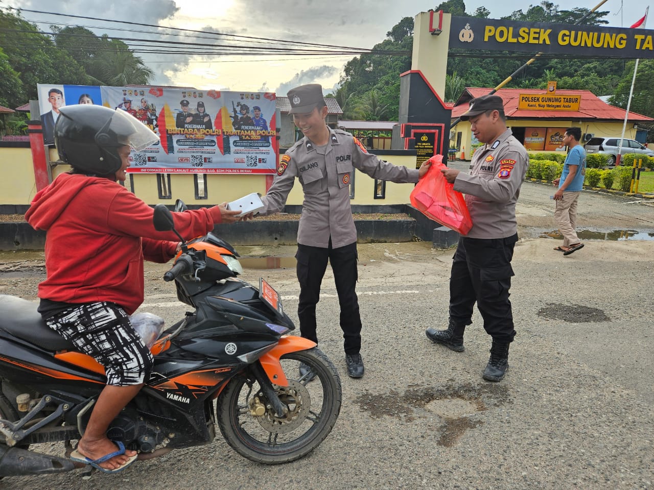 Dipimpin langsung oleh Kapolsek Gunung Tabur, AKP Muhammad Fajri, kegiatan ini bertujuan untuk berbagi kebahagiaan dan mempererat silaturahmi dengan masyarakat setempat. Takjil diberikan kepada pengendara yang melintas maupun warga sekitar sebagai bentuk kepedulian di bulan yang penuh berkah ini.