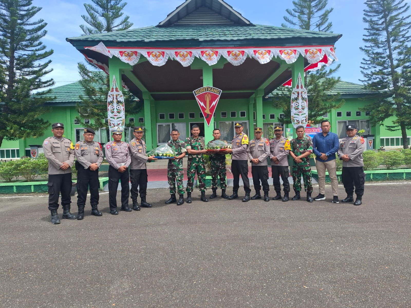 Polres Berau Berikan Ucapan Selamat HUT TNI Ke-79 di Yon Armed 18/Komposit