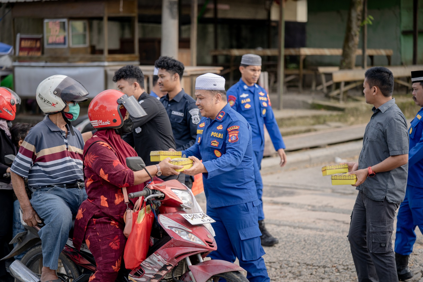 “Personel kami membagikan takjil secara humanis dan tertib agar tidak mengganggu arus lalu lintas,” jelas IPTU Muhammad Kasim Kahar.
