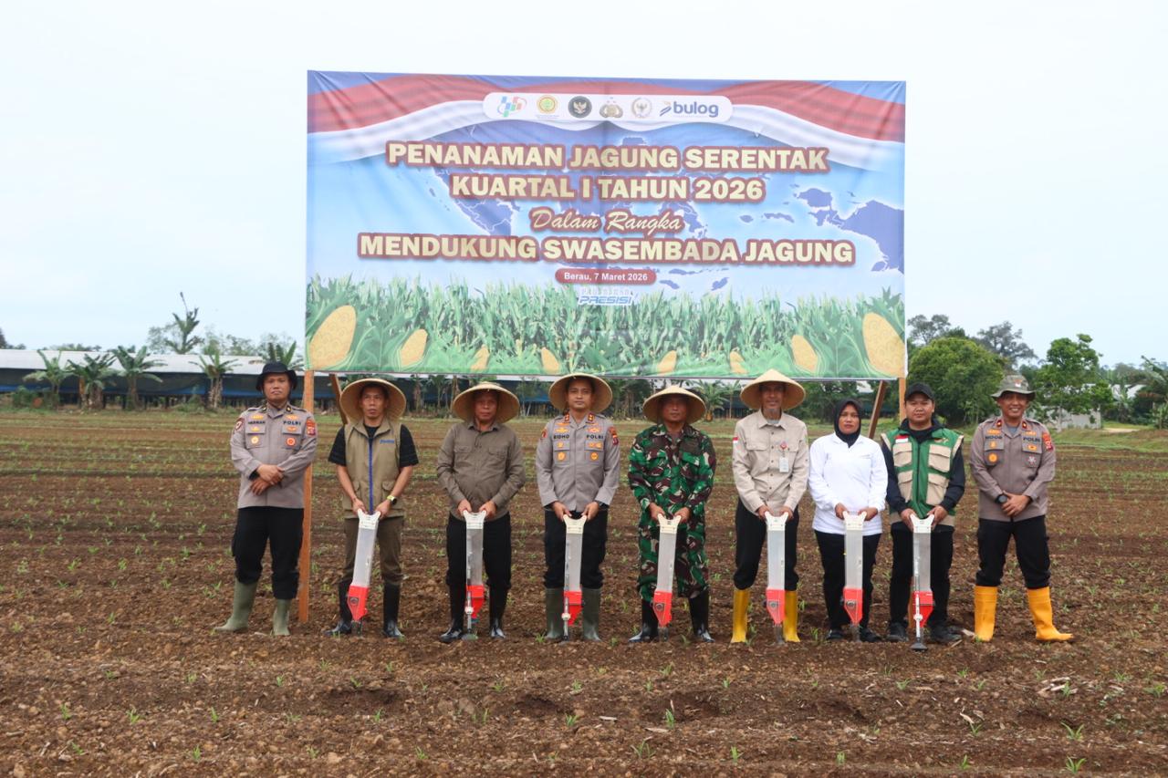 Kapolres Berau AKBP Ridho Tri Putranto menyampaikan bahwa kegiatan penanaman jagung serentak ini merupakan bagian dari dukungan Polri terhadap program swasembada pangan nasional sekaligus upaya meningkatkan ketahanan pangan di daerah.