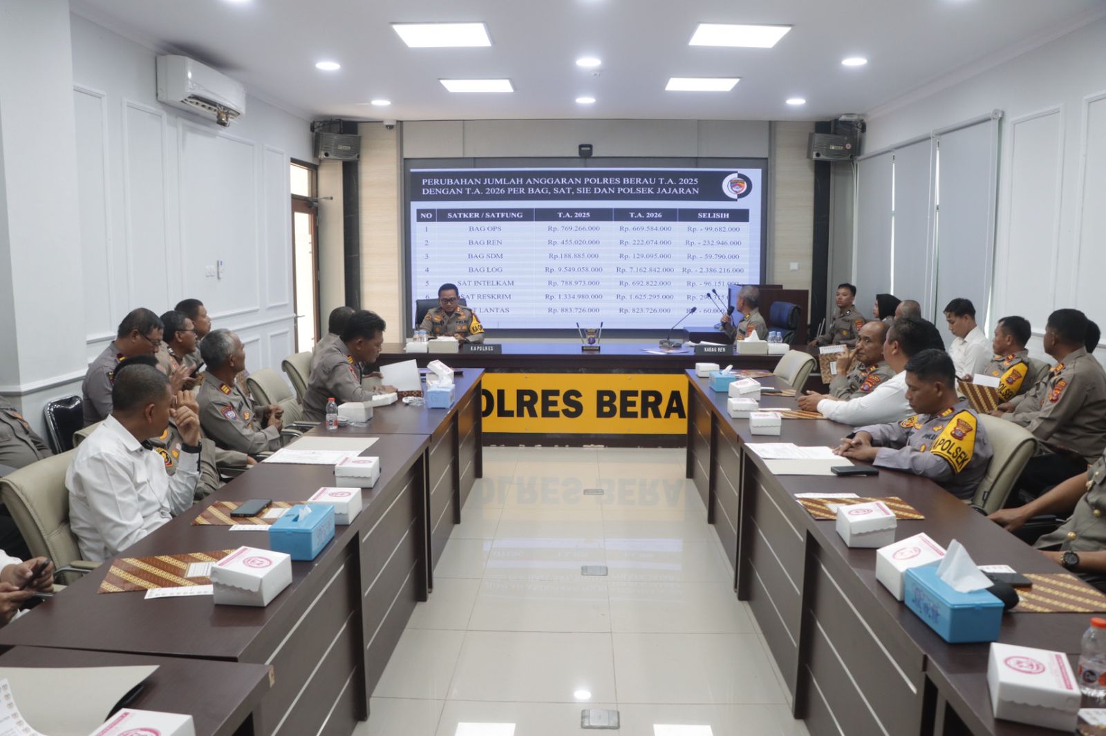 Rangkaian kegiatan diawali dengan pembukaan dan pembacaan doa, dilanjutkan sambutan Kapolres Berau. Dalam arahannya, Kapolres menekankan pentingnya penggunaan anggaran secara efektif, efisien, transparan, dan akuntabel, termasuk dalam pembuatan pertanggungjawaban anggaran (Perwabku).