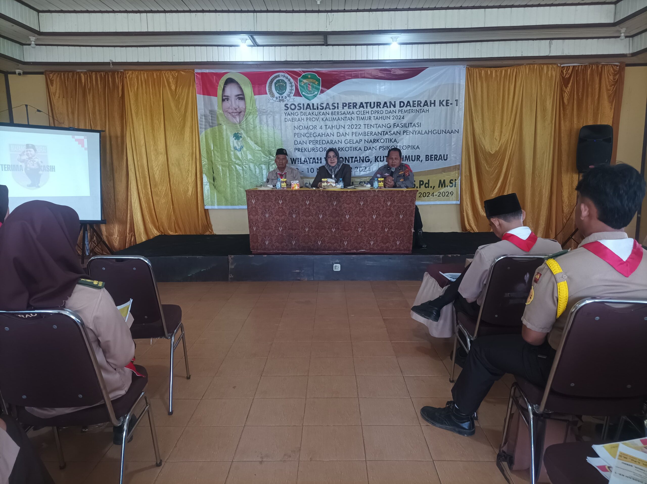 Tanjung Redeb – Polres Berau melalui Satbinmas telah melaksanakan kegiatan sosialisasi Peraturan Daerah (Perda) No. 04 tentang Fasilitasi, Pencegahan, dan Pemberantasan Penyalahgunaan serta Peredaran Narkotika, sekaligus penyuluhan mengenai Bahaya Narkoba pada hari Rabu, 6 November 2024. Kegiatan ini dilaksanakan di Aula Kwarcab Berau, Kecamatan Tanjung Redeb, dan dihadiri oleh sejumlah tokoh pendidikan dan anggota DPRD Provinsi Kalimantan Timur, Hj. Syarifatul Sya’diyah.