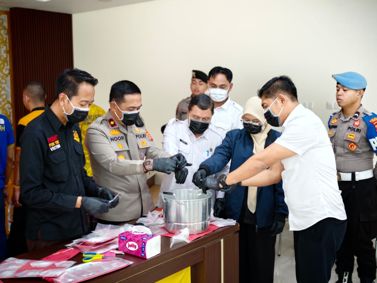 Kompol Noor Dhianto menjelaskan bahwa proses pemusnahan dilakukan dengan cara melarutkan sabu ke dalam rebusan air yang telah dicampur detergen, kemudian hasil larutan dibuang ke dalam septic tank guna memastikan barang bukti tidak dapat digunakan kembali.
