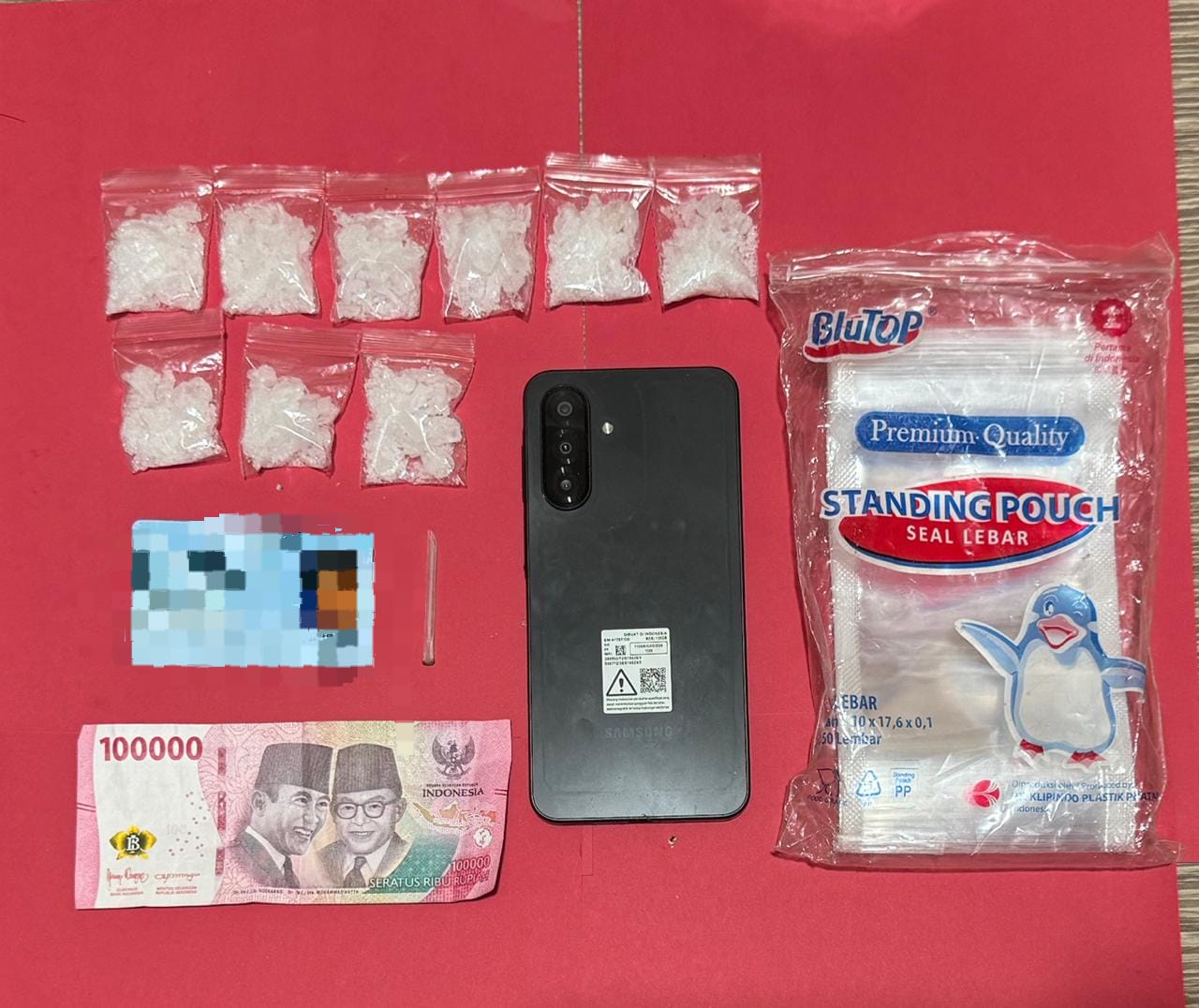 Petugas kemudian mendatangi rumah kontrakan tersangka JP yang berada di Kelurahan Sei Bedungun, Kecamatan Tanjung Redeb. Dalam penggeledahan yang disaksikan ketua RT dan warga setempat, petugas menemukan 9 bungkus sedang narkotika jenis sabu dengan total berat bruto 46,33 gram, serta sejumlah barang bukti lain berupa alat hisap, plastik kemasan, sepeda motor, uang tunai, dan telepon genggam. “Seluruh barang bukti tersebut kami amankan untuk proses penyidikan lebih lanjut,” tambah AKP Agus Priyanto.