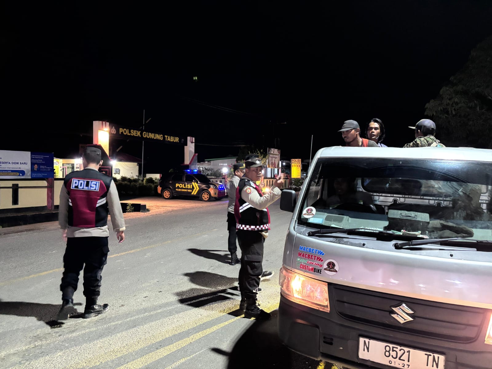 Gunung Tabur, Berau – Personel Polsek Gunung Tabur melaksanakan kegiatan KRYD (Kegiatan Rutin yang Ditingkatkan) di wilayah Kecamatan Gunung Tabur pada Senin malam. Kegiatan ini menyasar warga dan pengendara di sekitar Jalan A. Yani dan Jalan Harm Ayoeb.