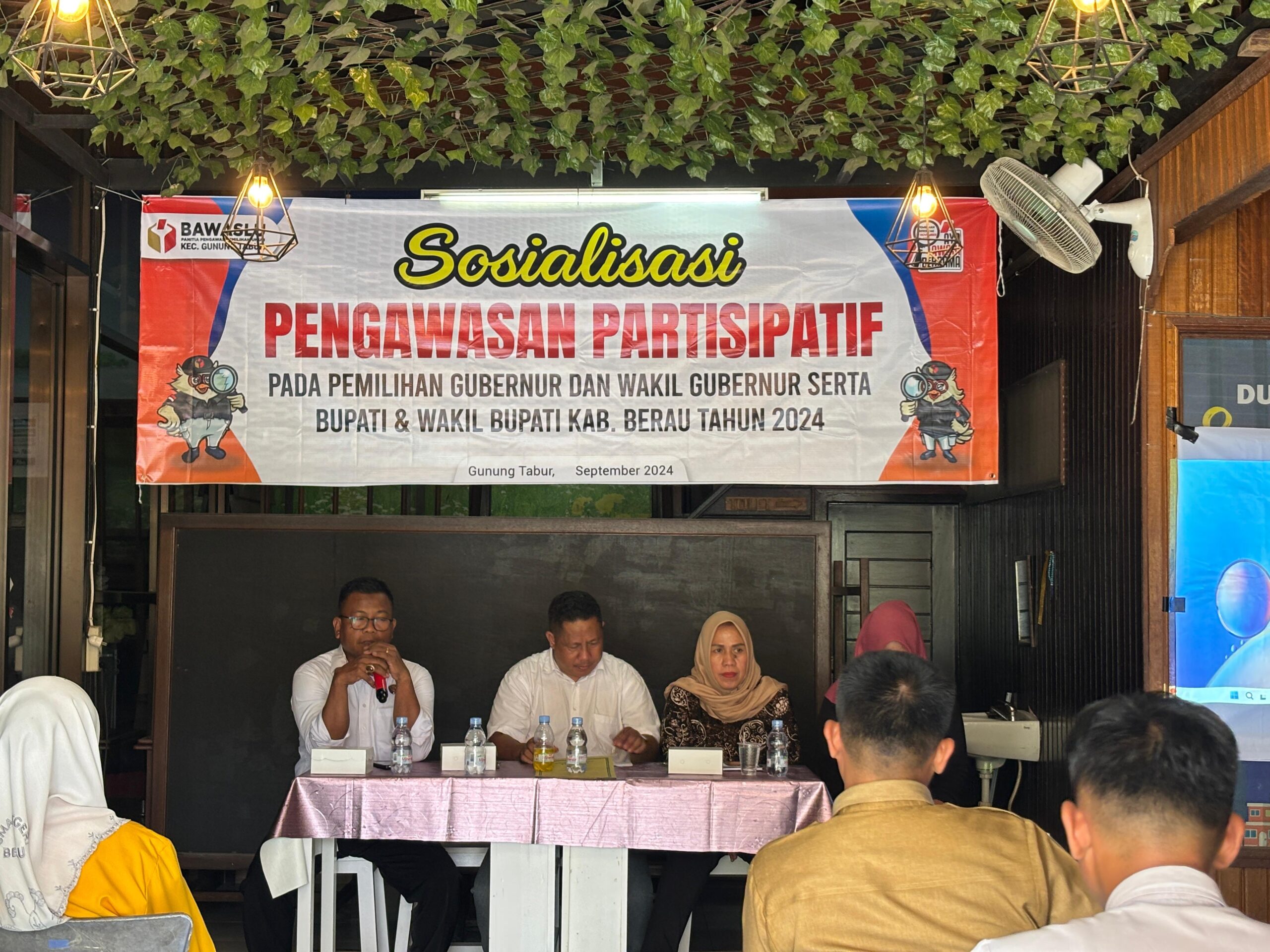 Polres Berau – Pada hari Senin, 30 September 2024, pukul 11.00 WITA, bertempat di Kedai Aditya, Jalan Padat Karya RT 8, Kelurahan Gunung Tabur, Kecamatan Gunung Tabur, dilaksanakan kegiatan Sosialisasi Pengawasan Partisipatif dalam rangka Pemilihan Gubernur dan Wakil Gubernur serta Bupati dan Wakil Bupati Kabupaten Berau tahun 2024. Kegiatan ini diselenggarakan oleh Panwas Kecamatan Gunung Tabur untuk meningkatkan kesadaran partisipatif masyarakat dalam proses pemilihan umum.