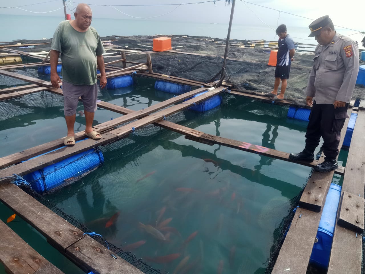 Maratua – Dalam rangka mendukung program ketahanan pangan di wilayah pesisir, Polsek Maratua Polres Berau Polda Kaltim memberikan perhatian khusus pada pengelolaan keramba ikan di Kampung Bohe Silian, Kecamatan Maratua. Keramba ini, dengan luas 25 meter x 50 meter, menjadi salah satu upaya pemenuhan pangan berbasis maritim di daerah tersebut.
