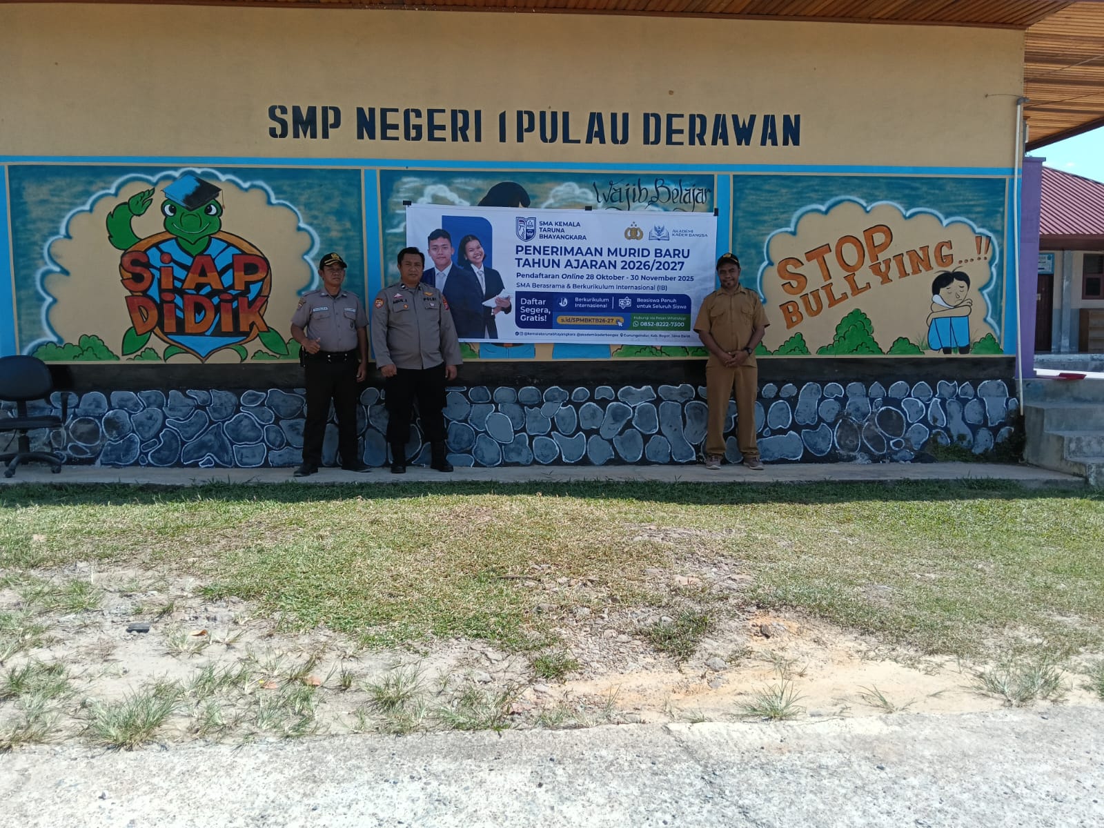 Pulau Derawan, 11 November 2025 — Polsek Pulau Derawan melaksanakan kegiatan sosialisasi Sistem Penerimaan Murid Baru (SPMB) SMA Kemala Taruna Bhayangkara Tahun Ajaran 2026/2027 di SMP Negeri 1 Pulau Derawan, Kecamatan Pulau Derawan, Kabupaten Berau.