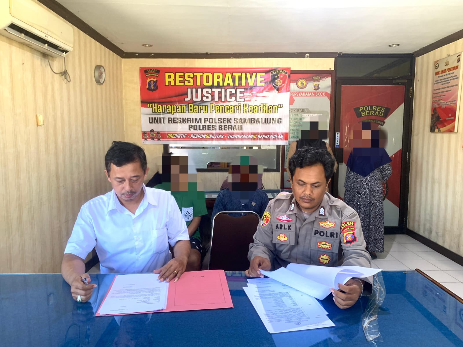 Sambaliung – Pada hari Rabu, 30 April 2025, Polsek Sambaliung Polres Berau berhasil melaksanakan kegiatan Restorative Justice (RJ) untuk menyelesaikan perkara dugaan tindak pidana pencurian yang melibatkan korban dan pelaku. Kegiatan ini berlangsung di ruang Restorative Justice Polsek Sambaliung, dengan tujuan untuk mencapai penyelesaian sengketa secara damai dan menghindari proses hukum yang lebih panjang.