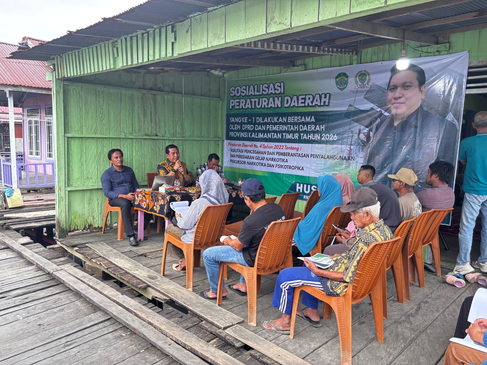 Kegiatan tersebut dihadiri Anggota DPRD Provinsi Kalimantan Timur Dapil 6, Husin Djufrie, Kepala Kampung Talisayan Ali Wardana, Kanit Reskrim Polsek Talisayan IPDA Sugeng Ehwanudin, S.H., staf DPRD Provinsi Kaltim, serta masyarakat RT 003 Kampung Talisayan. Melalui sosialisasi ini, masyarakat diberikan pemahaman mengenai aturan hukum terkait narkotika, bahaya penyalahgunaan, serta peran masyarakat dalam ikut serta mencegah peredaran gelap narkoba.