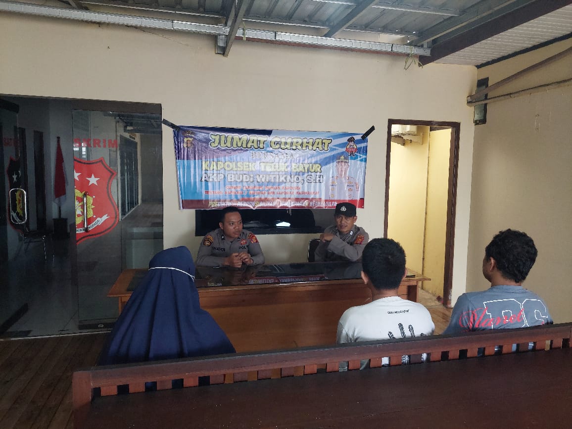 Bertempat di Jl. Sungai Kuyang, Kelurahan Teluk Bayur, Kecamatan Teluk Bayur, Kabupaten Berau, telah dilaksanakan kegiatan Jum’at Curhat bersama Bhabinkamtibmas Polsek Teluk Bayur. Kegiatan ini dihadiri oleh Bripka Yusrianto selaku Bhabinkamtibmas, Bripda Safari Wahdi dari Unit Samapta, serta beberapa warga Kelurahan Teluk Bayur. Pertemuan tersebut menjadi wadah bagi masyarakat untuk menyampaikan aspirasi dan keluhan terkait situasi keamanan di lingkungan mereka.