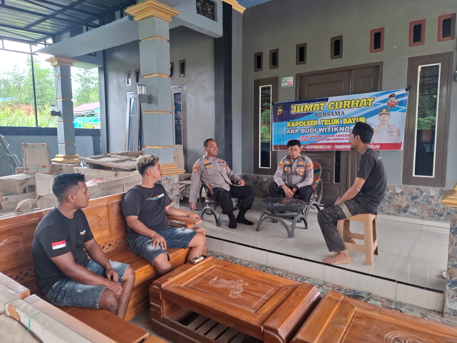 Polsek Teluk Bayur kembali melaksanakan kegiatan Jumat Curhat sebagai bentuk pelayanan dialogis kepada masyarakat. Kegiatan ini berlangsung pada Jumat, 28 November 2025 pukul 10.00 Wita di Jl. Lobang Baru, Kelurahan Teluk Bayur, Kecamatan Teluk Bayur, Kabupaten Berau. Dalam agenda ini, pihak kepolisian menampung langsung aspirasi, keluhan, serta masukan dari warga terkait keamanan dan ketertiban di wilayah hukum Polsek Teluk Bayur.