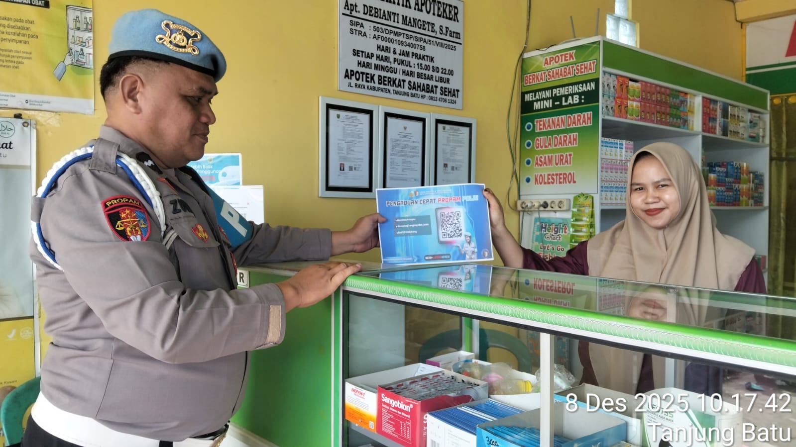 Pulau Derawan, Kabupaten Berau. Dalam rangka meningkatkan transparansi pelayanan dan kemudahan akses masyarakat dalam penyampaian pengaduan, Polsek Pulau Derawan melaksanakan sosialisasi Layanan Dumas Propam Polri pada Senin (08/12/2025) sekira pukul 09.40 WITA. Kegiatan ini merupakan tindak lanjut dari TR Kapolda Kaltim Nomor STR/344/VIII/WAS.2.2./2025 tanggal 26 Agustus 2025 mengenai pelaksanaan program Propam Polri yang memuat 9 program utama dan 43 kegiatan pengawasan.