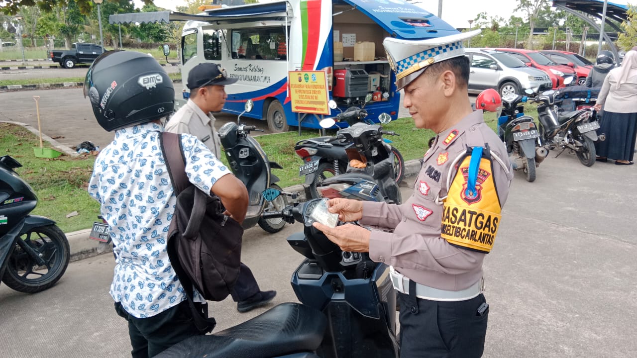 Polres Berau – Dalam rangka Operasi Zebra Mahakam 2024, Satuan Lalu Lintas Polres Berau bersama instansi terkait melaksanakan penertiban pajak kendaraan bermotor pada Kamis, 17 Oktober 2024.