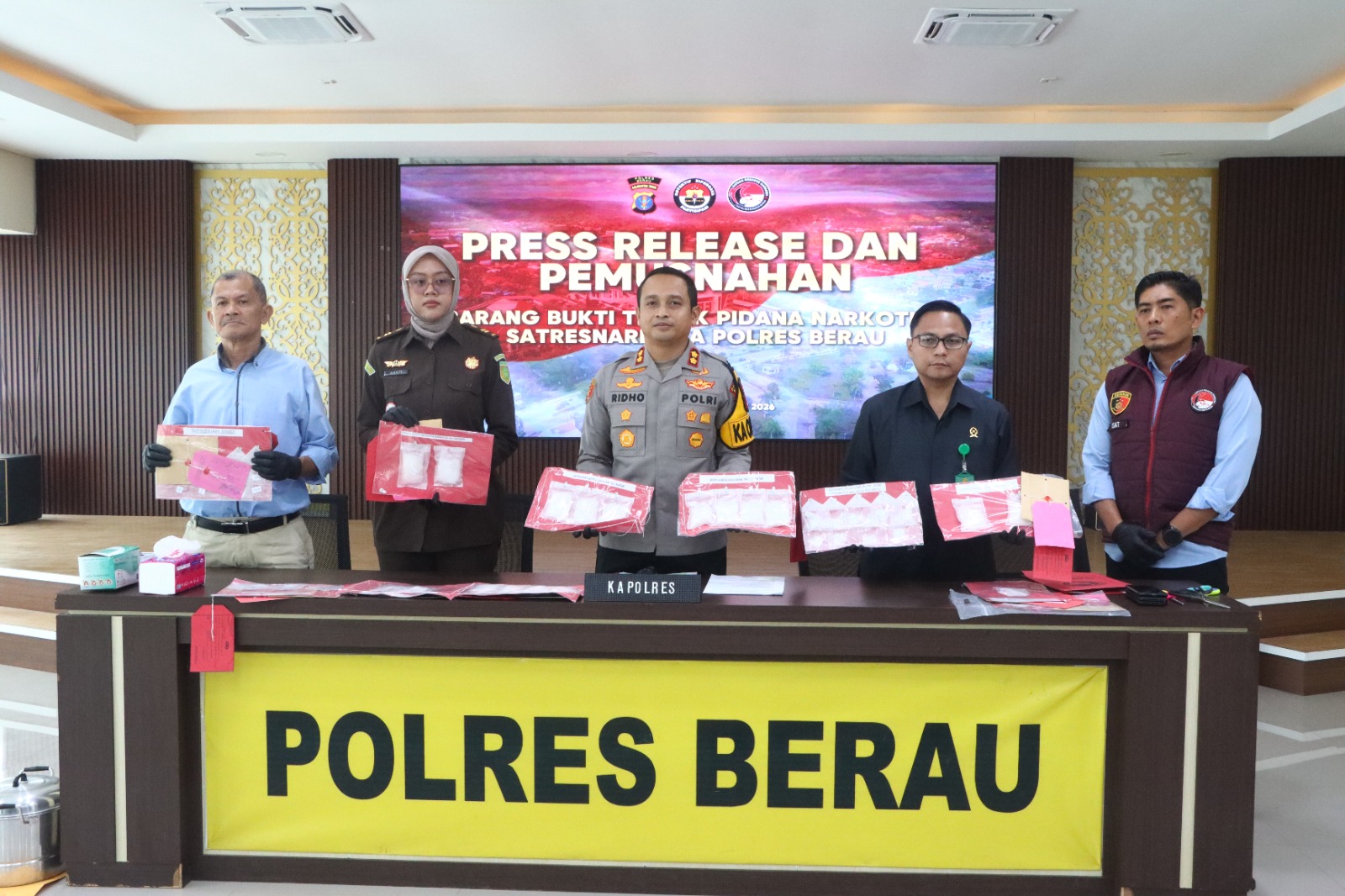 Pengungkapan tersebut disampaikan dalam rilis yang digelar pada Selasa (17/3/2026) pukul 11.00 Wita. Kapolres Berau AKBP Ridho Tri Putranto didampingi Kasat Resnarkoba AKP Agus Priyanto menjelaskan bahwa pelaku diamankan pada Senin (16/3/2026) sekitar pukul 10.00 Wita di Jalan Ahmad Yani, poros Kalimantan Timur–Kalimantan Utara.