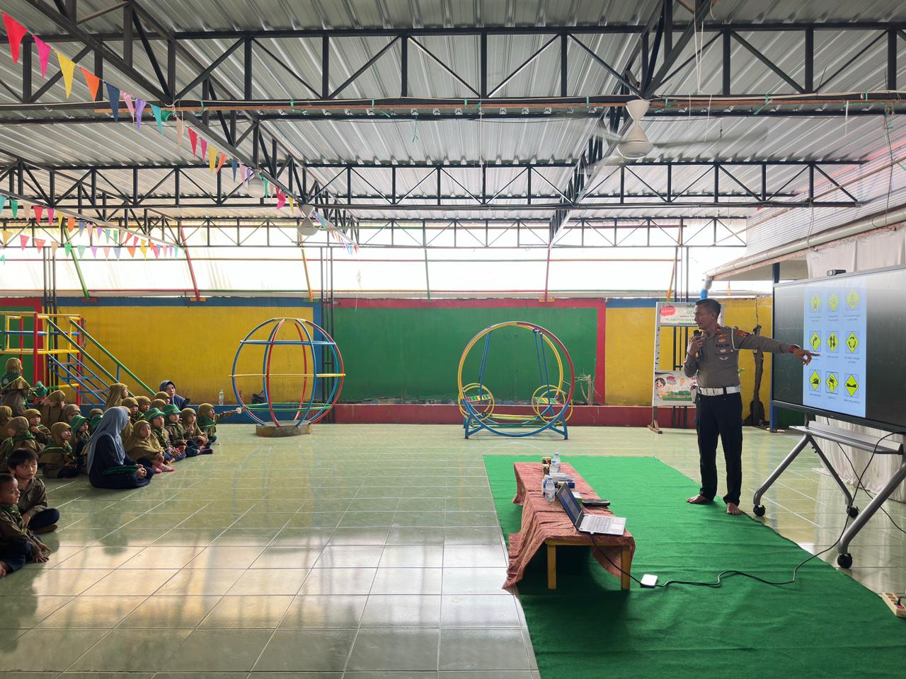Polres Berau – Upaya menumbuhkan kesadaran tertib berlalu lintas sejak usia dini terus dilakukan oleh Sat Lantas Polres Berau. Melalui Unit Keamanan dan Keselamatan (Kamsel), sosialisasi Kamseltibcar Lantas dilaksanakan di TK ‘Aisyiyah Bustanul Athfal I dengan sasaran anak-anak taman kanak-kanak agar lebih mengenal aturan dan keselamatan berlalu lintas.