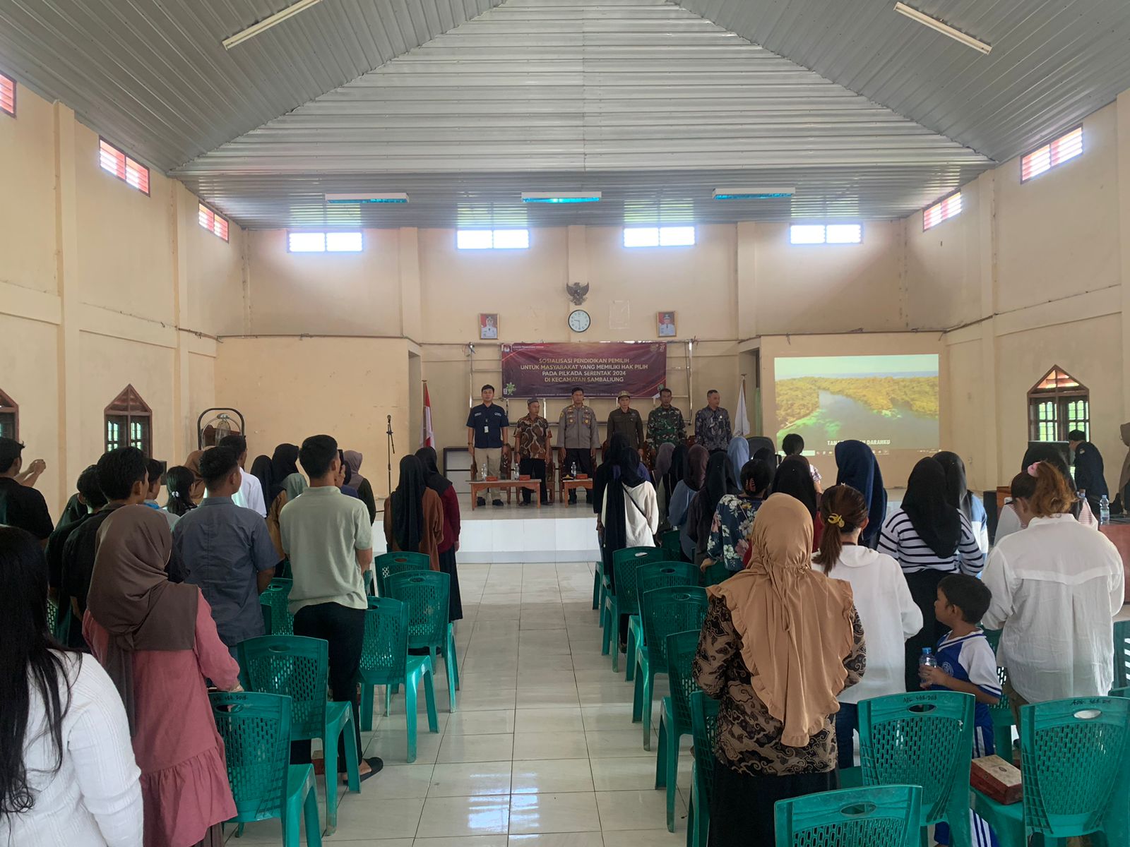 Berau, 2 November 2024 – Polsek Sambaliung, bersama dengan Panitia Pemilihan Kecamatan (PPK) dan unsur terkait lainnya, melaksanakan kegiatan sosialisasi pendidikan pemilih untuk masyarakat di Gedung Basusuyan, Kecamatan Sambaliung, pada hari Sabtu. Kegiatan yang berlangsung dari pukul 09.00 hingga 11.30 WITA ini bertujuan untuk memberikan pemahaman kepada masyarakat mengenai pentingnya hak suara dalam Pilkada Serentak 2024.