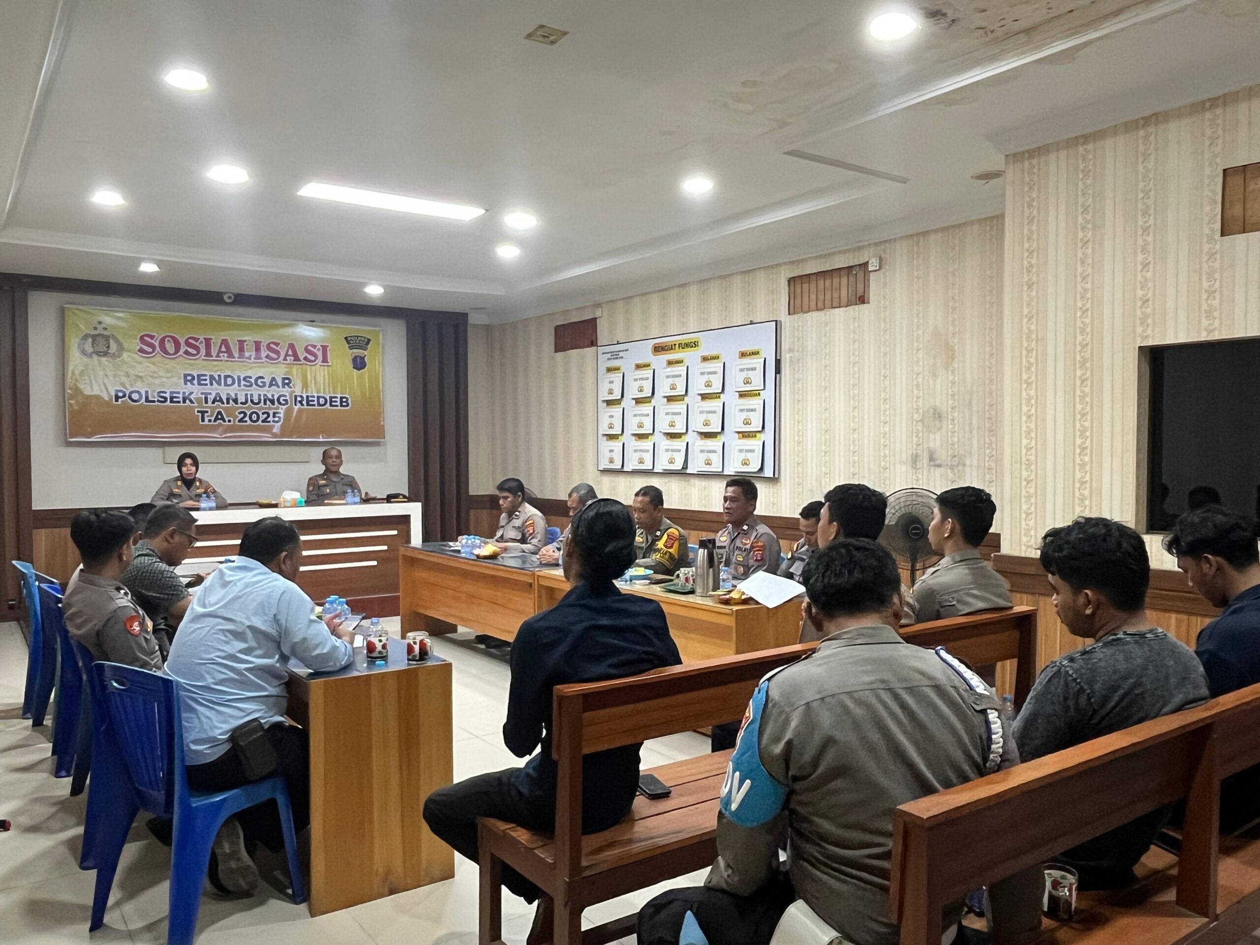 Kapolsek Tanjung Redeb, AKP Novita Citra Mega Restika, S.I.K, memimpin sosialisasi Rendisgar Tahun Anggaran 2025 yang dilanjutkan dengan Analisa dan Evaluasi (Anev) Mingguan Polsek Tanjung Redeb pada Selasa, 14 Januari 2025. Kegiatan ini dihadiri oleh seluruh jajaran personel Polsek Tanjung Redeb.