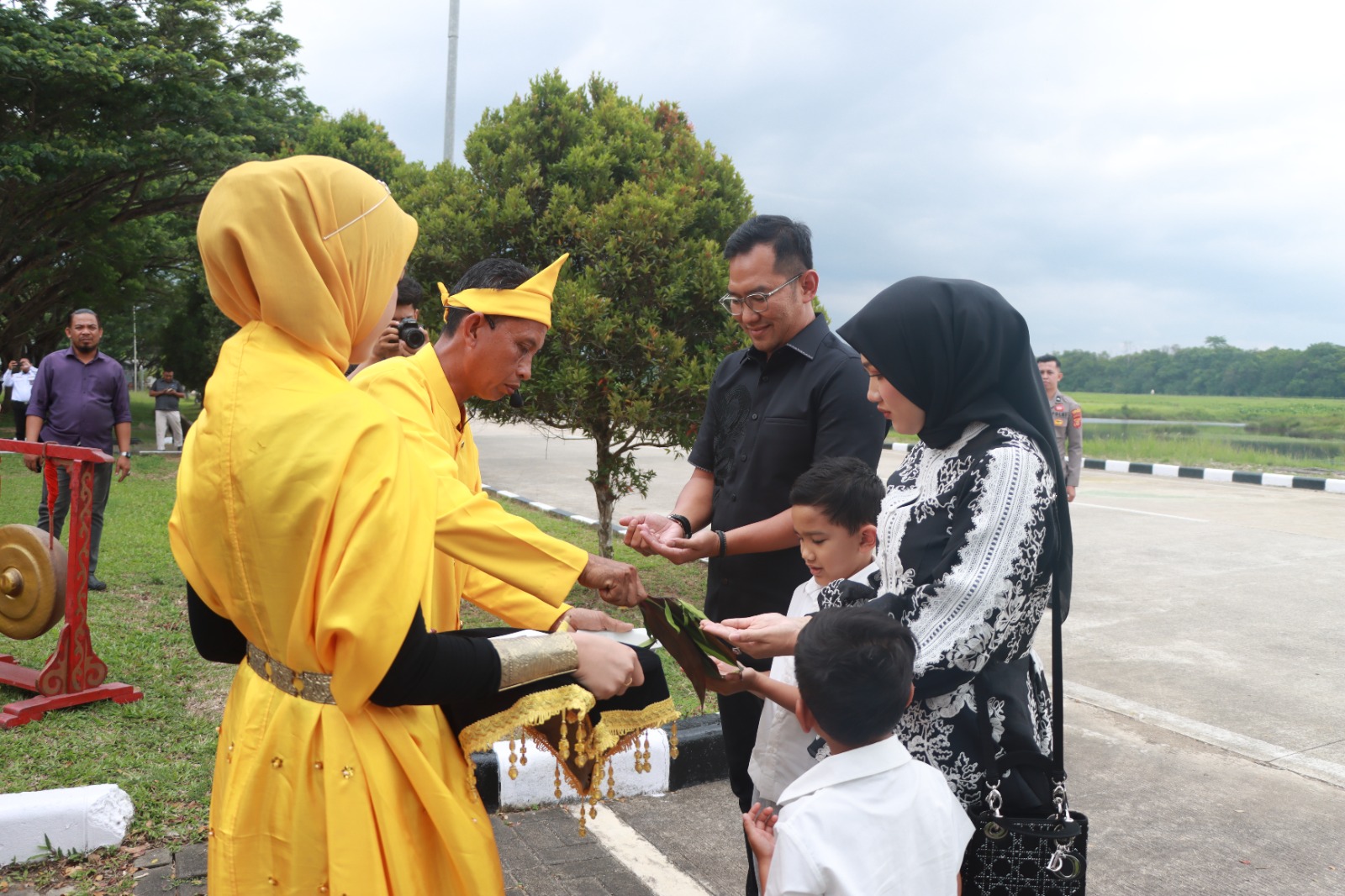 Setelah tiba, Kapolres Berau yang baru itu bersama istri mendapat penyambutan sekaligus ucapan selamat dari Wakapolres Berau, Kompol Komank Adhi Andika serta para pejabat utama jajaran Polres Berau lainnya, kemudian disambut lagi dengan tepung tawar dan tari selamat datang dari salah satu sanggar tari di Berau.