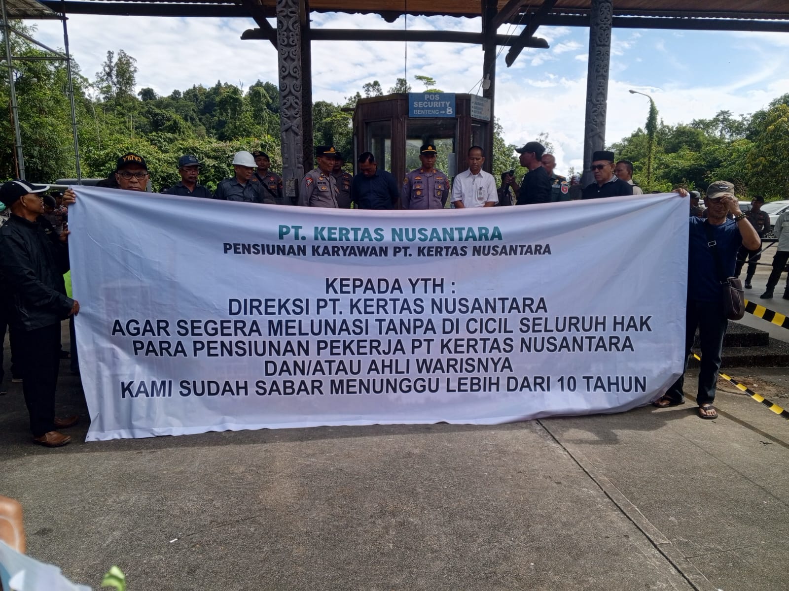 Sambaliung – Puluhan eks karyawan dan pensiunan PT. Kertas Nusantara (KN) Berau menggelar aksi damai di pintu masuk Site Mangkajang, Kampung Pesayan, Kecamatan Sambaliung, Kabupaten Berau, pada Senin, 21 April 2025. Aksi yang dimulai pukul 09.00 WITA hingga 15.30 WITA ini digelar untuk menuntut kejelasan hak-hak pensiun yang belum diterima sejak lebih dari satu dekade lalu.