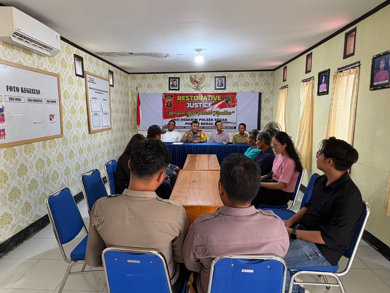 Kegiatan mediasi yang berlangsung pada siang hari tersebut dipimpin langsung oleh Kapolsek Segah AKP Lisinius Pinem, S.H., dengan melibatkan jajaran personel Polsek, tokoh masyarakat, tokoh adat Dayak Kenyah, serta keluarga dari pihak pelapor dan terlapor.