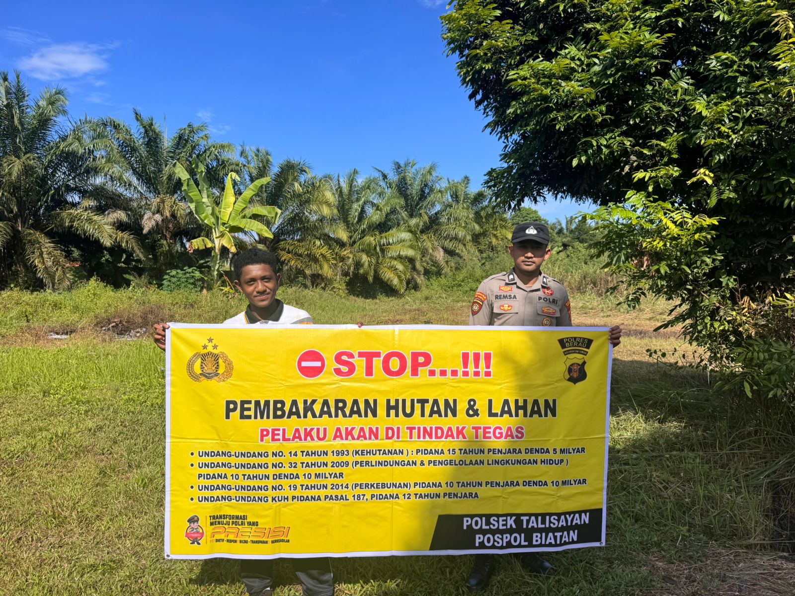 Talisayan – Sebagai langkah antisipasi terhadap potensi kebakaran hutan dan lahan (karhutla), personel Polsek Talisayan terus mengintensifkan upaya pencegahan melalui kegiatan sosialisasi dan imbauan kepada masyarakat di wilayah Kecamatan Talisayan, Kabupaten Berau.