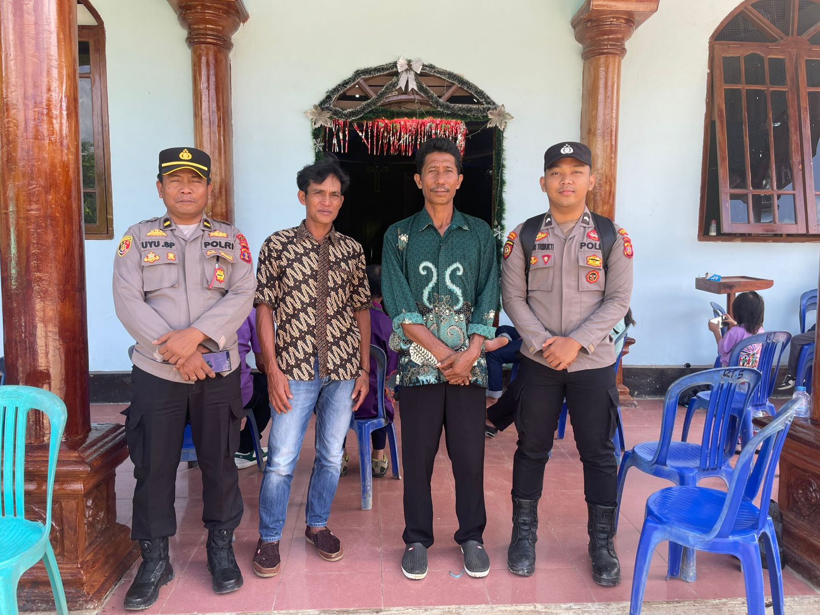 Selain memastikan situasi berlangsung aman dan kondusif, personel kepolisian juga menjalin koordinasi aktif dengan pengurus gereja yang diwakili oleh Bapak Yance, guna menjaga sinergi keamanan selama kegiatan berlangsung.